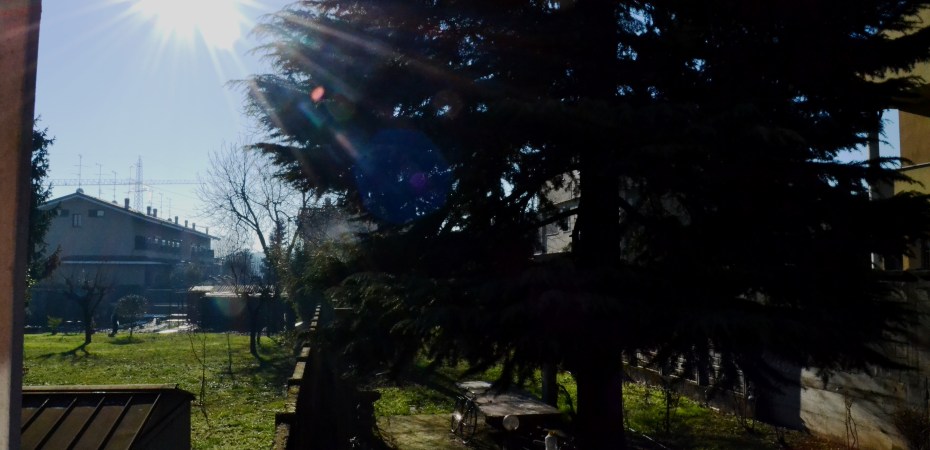 Il sole ora sta per essere nascosto dal pino, è caldo, vivo.